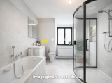 Salle de bain complète, avec : baignoire, douche, WC, branchement machine à laver et fenêtre