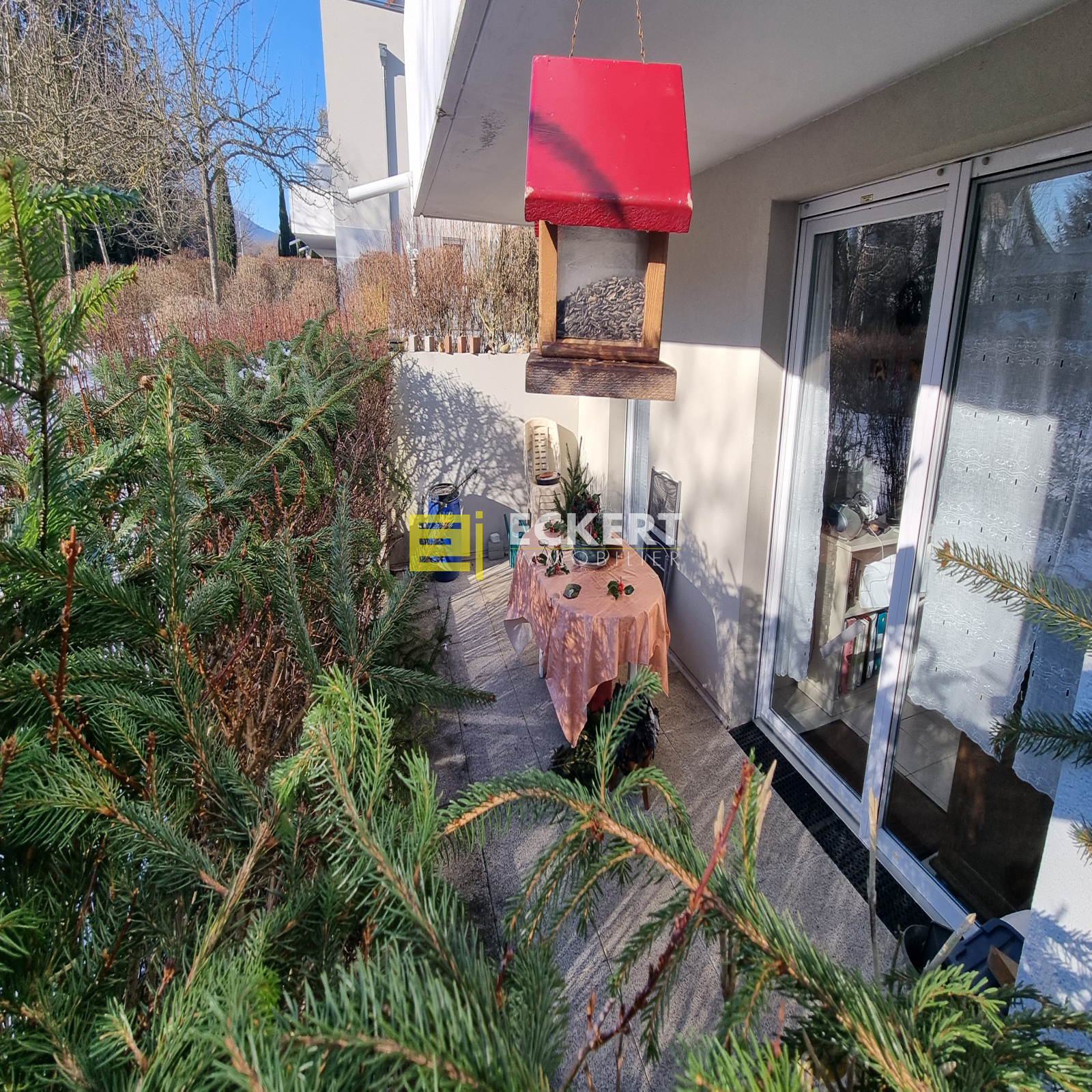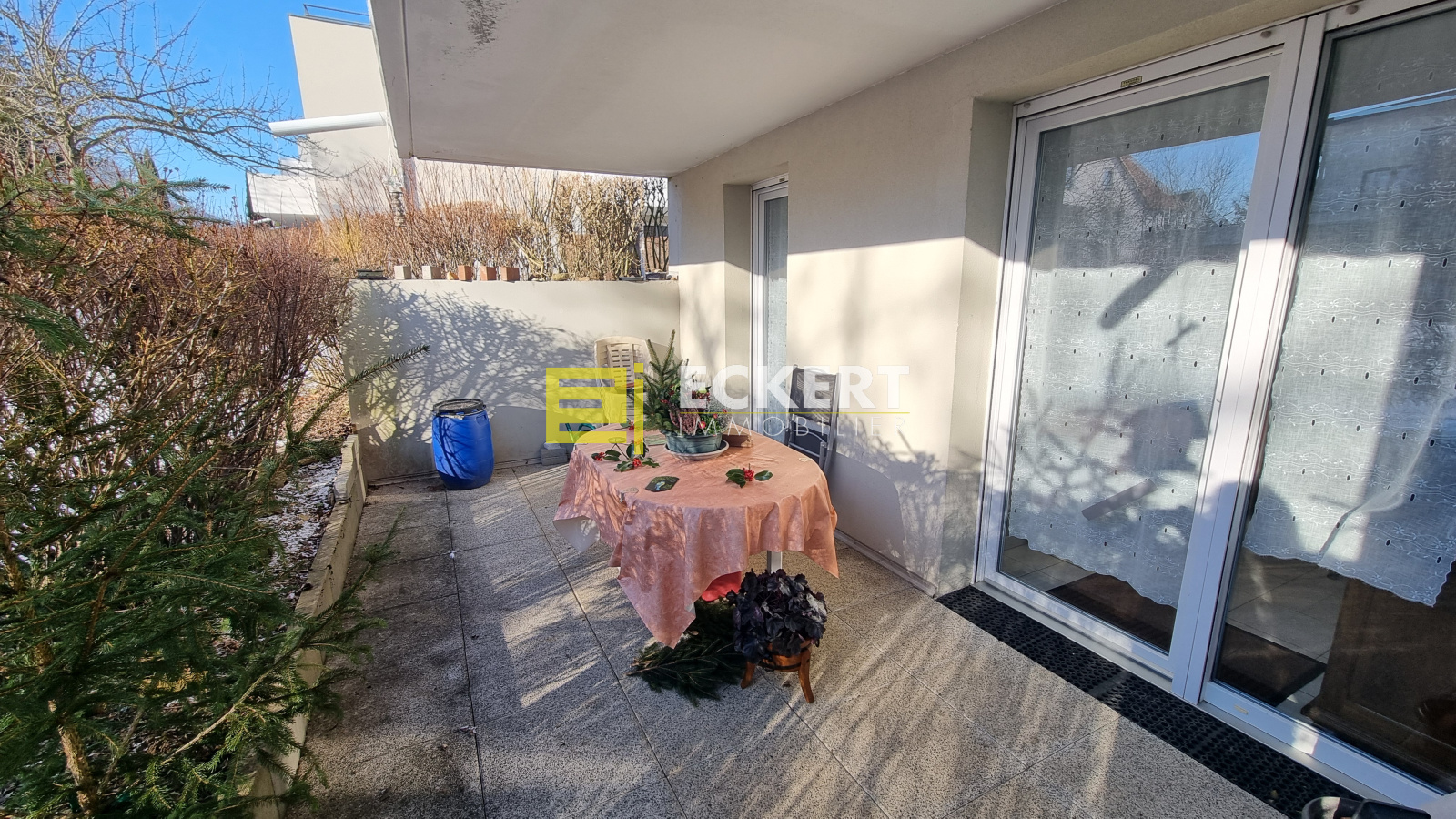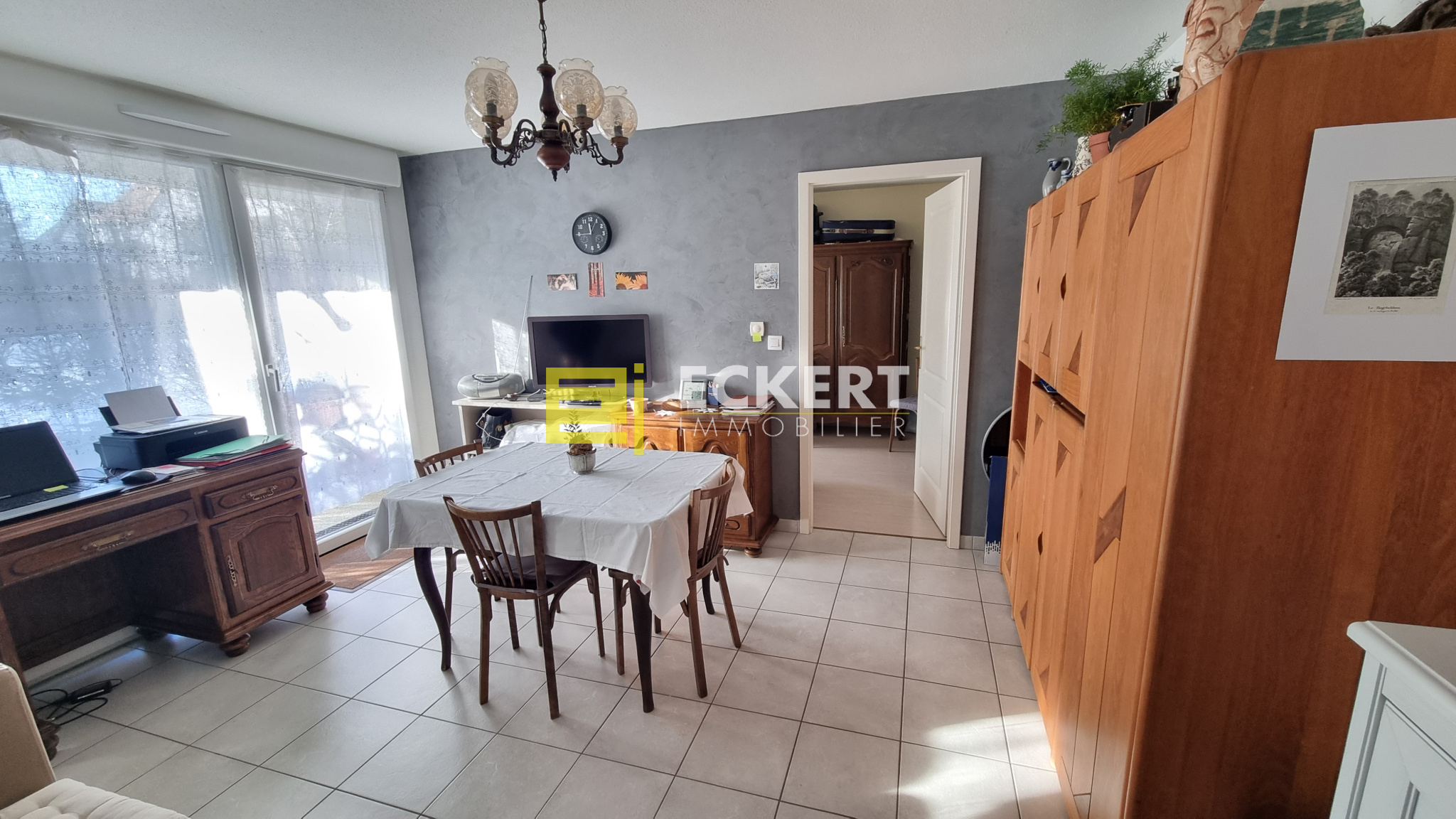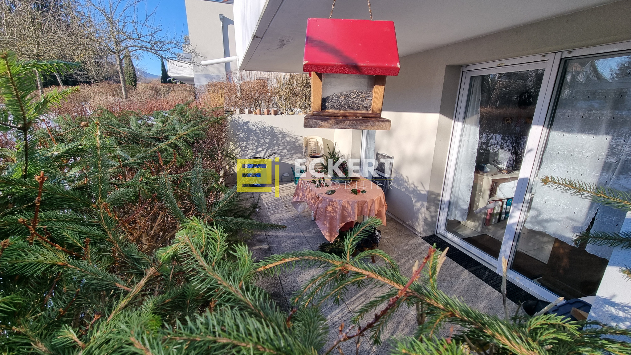 Pièce de vie lumineuse avec accès direct à la terrasse