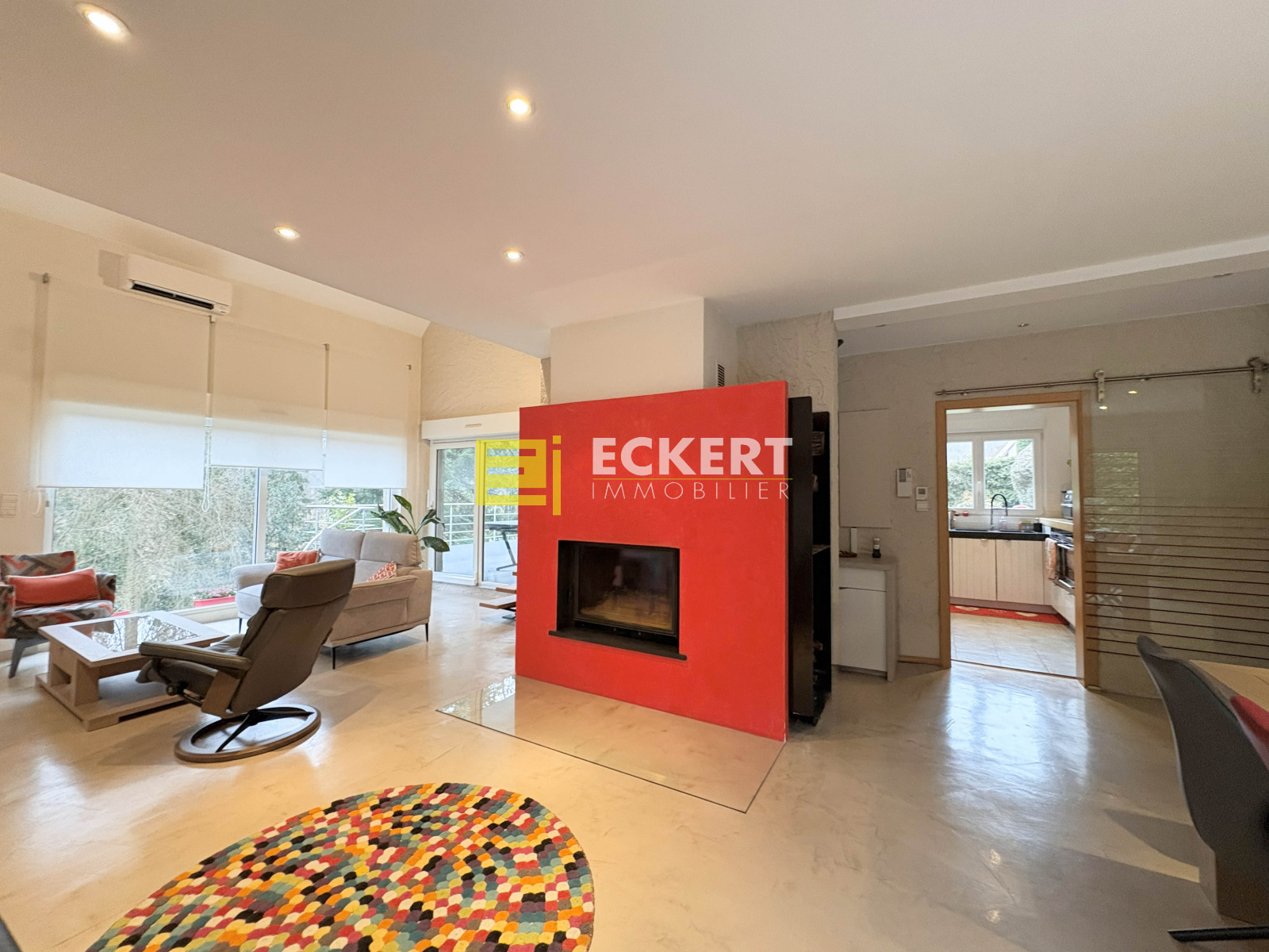 Grandes pièces, espace de vie spacieux et chaleureux avec sa cheminée
