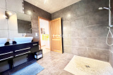 Au 1er étage : 1 dégagement, 1 cuisine équipée moderne ouverte sur 1 salle à manger et 1 véranda (avec accès directe à l'extérieure et la piscine), 1 salon, 1 salle d'eau (douche à l'Italienne et meuble double vasque), 1 WC séparé avec grand placards de rangeement (norme PMR), 2 chambres, 1 grande chambre (env. 24m² au sol) à demi niveau.