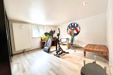 Au rez-de-chaussée : 1 hall d'entrée, 2 chambres spacieuses (env. 16m² et 20m²), 1 grande pièce carrelée et chauffée, 1 WC séparé, 1 douche,1 local technique (chaufferie) + buanderie, 1 grand et haut garage intérieur.